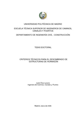 | Título: | Criterios técnicos para el descimbrado de estructuras de hormigón |