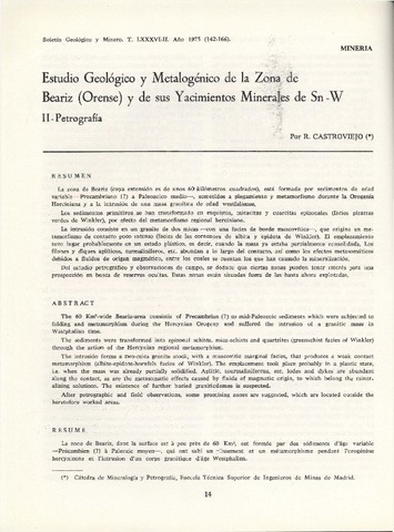 | Título: | Estudio geológico y metalogénico de la zona de Beariz (Orense) y de sus yacimientos minerales de Sn-W. II: Petrografía |