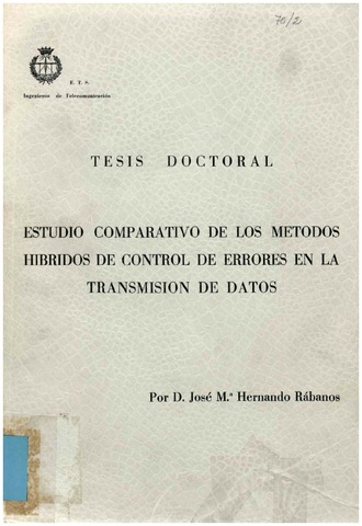 El problema general a cuya resolución contribuimos con esta Tesis, consiste en el estudio de un sistema mixto de control de errores en la transmisión de datos. La necesidad de profundizar en los estudios - relativos al control de errores, ha quedado expuesta en numerosas publicaciones (2) (3) como por el — CCITT (4) (5) debido a la importancia creciente de la transmisión de Matos con el advenimiento de los sistemas en tiempo real y los de teleproceso. Con objeto de transmitir información digital sobre los canales existentes para los cuales la probabilidad media de error en los bits es superior al valor - requerido, se hace necesario emplear alguna forma de - protección o control que mejore la confiabilidad. Son conocidos, en mayor o menor grado, procedimientos de codificación que permiten la detección o - corrección de los errores que aparecen en una transmisión, así como sus ventajas e inconvenientes. Estos procedimientos han aplicado extensivamente conceptos algebraicos a los problemas de codificación, con objeto de permitir una uniformidad en el tratamiento de los mismos, así como la búsqueda de relaciones algorítmicas que simplifiquen la instrumentación de codificadores y decodificadores. En general, en las transmisiones digitales se emplean códigos binarios por lo que nuestro trabajo ha considerado tales códigos si bien, se ha efectuado una generalización para códigos con 2"^ símbolos. El sistema mixto que hemos considerado constituye una mejora del R clásico (como todos los métodos - híbridos) y se apoya en la estructura de grupo de los códigos binarios. Como se verá en el Capítulo dedicado a - su exposición, se basa en una división por zonas del diagrama normalizado propio de tales códigos. En relación con el método estudiado, ha sido - preciso resolver algunos problemas adicionales, como el del estudio de la distribución de los pesos de las palabras de un código, el de simplificación del procedimiento de corrección de errores, aprovechando las propiedades de permutación de los códigos estudiados, la descomposición en factores de polinomios y otros. Hemos resumido también las características más fundamentales de los códigos-grupo binarios en cuyo marco encaja nuestro trabajo. serán los que constituyan la base de nuestro estudio, el cual se aplicará mas concretamente a los códigos cíclicos, cuyo análisis se efectúa en el Capítulo III. En el Capítulo V se presentan los métodos clásicos de control de errores. En el VI se estudia el sistema objeto de nuestro trabajo, así como su generalización. Para la obtención de resultados numéricos es preciso conocer la estructura interna de cada código, problema que hemos resuelto en el Capítulo IV. Los cálculos efectivos y comparaciones se han efectuado en el Capítulo VII.