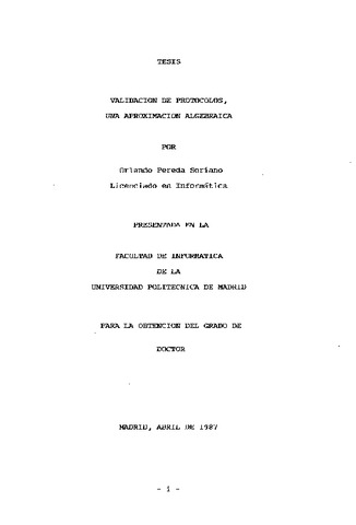 | Título: | Validación de protocolos, una aproximación algebraica |