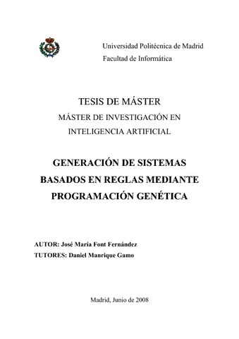 | Título: | Generación de sistemas basados en reglas mediante programación genética |