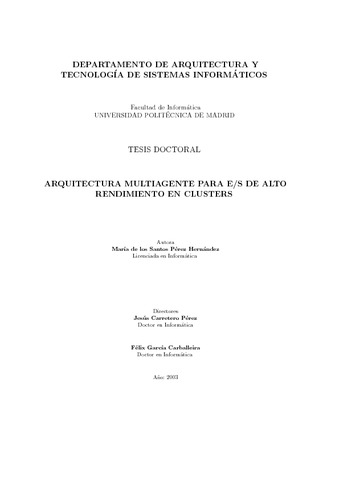 | Título: | Arquitectura multiagente para E/S de alto rendimiento en clusters |
