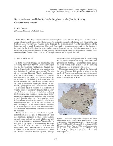 | Título: | Rammed earth walls in Serón de Nágima castle (Soria, Spain): Constructive lecture |