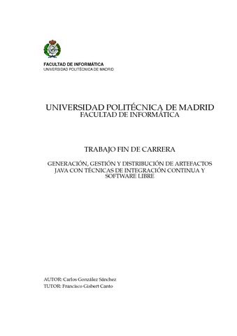 | Título: | Generación, gestión y distribución de artefactos Java con técnicas de integración continua y software libre |