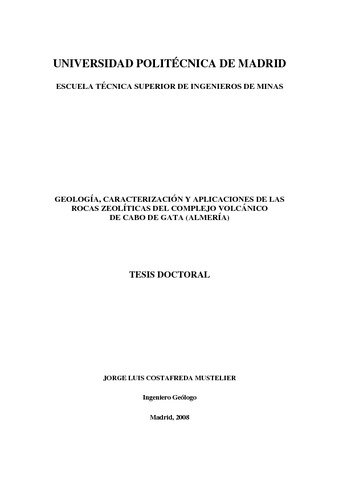 | Título: | Geología, caracterización y aplicaciones de las rocas zeolíticas del complejo volcánico de Cabo de Gata (Almeria) |