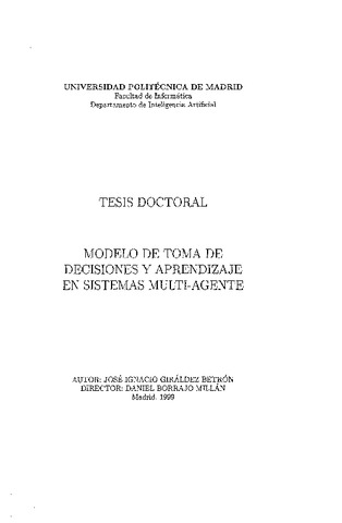 | Título: | Modelo de toma de decisiones y aprendizaje en sistemas multi-agente |