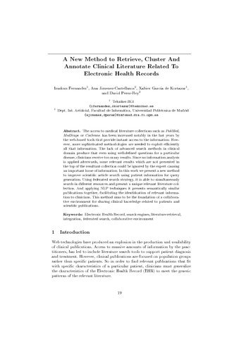 | Título: | A New Method to Retrieve, Cluster And Annotate Clinical Literature Related To Electronic Health Records |