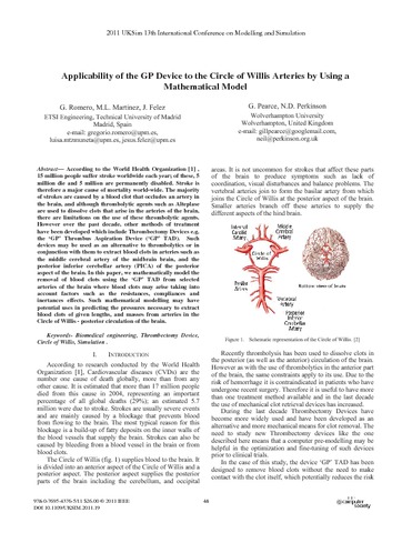 | Título: | Applicability of the GP Device to the Circle of Willis Arteries by Using a Mathematical Model |