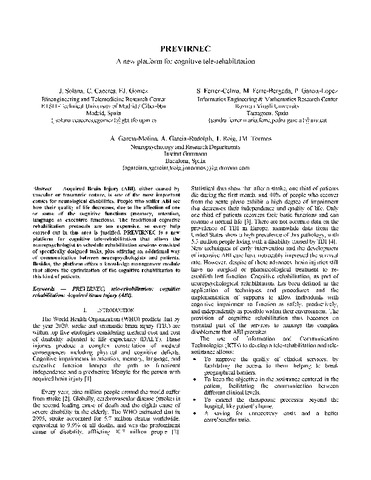 | Título: | PREVIRNEC A new platform for cognitive tele-rehabilitation |