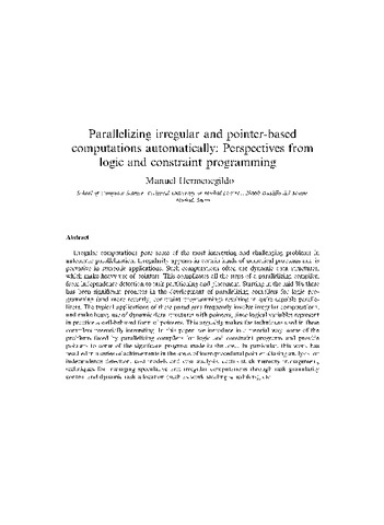 | Título: | Parallelizing irregular and pointer-based computations automatically: perspectives from logic and constraint programming |