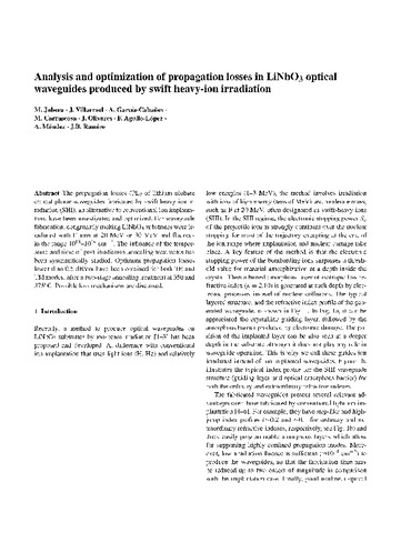 | Título: | Analysis and optimization of propagation losses in LiNbO3 optical waveguides produced by swift heavy-ion irradiation |