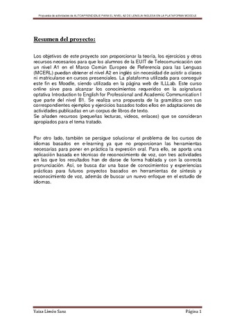 to get A2 level in English without attending face-to-face courses. The platform used to achieve this aim is Moodle, which is currently being used in ILLLab website. This online course is due to attain the knowledge required in the