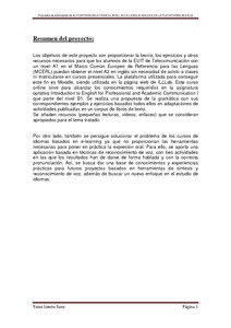 Los objetivos de este proyecto son proporcionar la teoría, los ejercicios y otros recursos necesarios para que los alumnos de la EUIT de Telecomunicación con un nivel A1 en el Marco Común Europeo de Referencia para las Lenguas