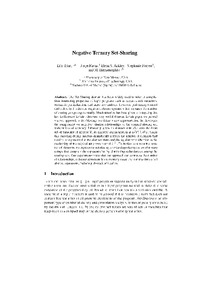 The Set-Sharing domain has been widely used to infer at compiletime interesting properties of logic programs such as occurs-check reduction, automatic parallelization, and flnite-tree analysis. However, performing abstract uniflcation in this domain requires a closure operation that increases the number of sharing groups exponentially. Much attention has been given to mitigating this key inefflciency in this otherwise very useful domain. In this paper we present a novel approach to Set-Sharing: we define a new representation that leverages the complement (or negative) sharing relationships of the original sharing set, without loss of accuracy. Intuitively, given an abstract state sh\> over the finite set of variables of interest V, its negative representation is p(V) \ shy. Using this encoding during analysis dramatically reduces the number of elements that need to be represented in the abstract states and during abstract uniflcation as the cardinality of the original set grows toward 2 . To further compress the number of elements, we express the set-sharing relationships through a set of ternary strings that compacts the representation by eliminating redundancies among the sharing sets. Our experiments show that our approach can compress the number of relationships, reducing signiflcantly the memory usage and running time of all abstract operations, including abstract uniflcation.