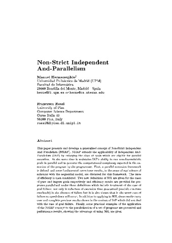 This paper presents and develops a generalized concept of Non-Strict Independent And Parallelism (NSIAP). NSIAP extends the applicability of Independent And- Parallelism (IAP) by enlarging the class of goals which are eligible for parallel execution. At the same time it maintains IAP's ability to run non-deterministic goals in parallel and to preserve the computational complexity expected in the execution of the program by the programmer. First, a parallel execution framework is defined and some fundamental correctness results, in the sense of equivalence of solutions with the sequential model, are discussed for this framework. The issue of efficiency is then considered. Two new definitions of NSI are given for the cases of puré and impure goals respectively and efficiency results are provided for programs parallelized under these definitions which include treatment of the case of goal failure: not only is reduction of execution time guaranteed (modulo run-time overheads) in the absence of failure but it is also shown that in the worst case of failure no speed-down will occur. In addition to applying to NSI, these results carry over and complete previous results shown in the context of IAP which did not deal with the case of goal failure. Finally, some practical examples of the application of the NSIAP concept to the parallelization of a set of programs are presented and performance results, showing the advantage of using NSI, are given.