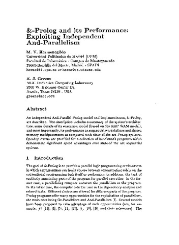 | Título: | &-prolog and its performance: exploiting independent and-parallelism |