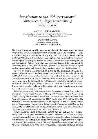 | Título: | Introduction to the 26th international conference on logic programming special issue |