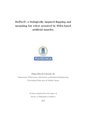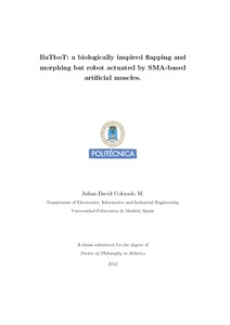 | Título: | BaTboT: a biologically inspired flapping and morphing bat robot actuated by SMA-based artificial muscles |