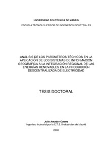 | Título: | Análisis de los parámetros técnicos en la aplicación de los sistemas de información geográfica a la integración regional de las energías renovables en la producción descentralizada de electricidad |