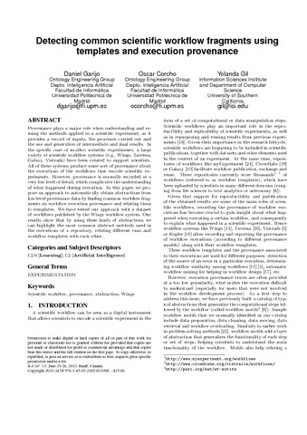 | Título: | Detecting common scientific workflow fragments using templates and execution provenance |