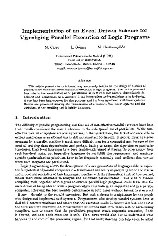 | Título: | Implementation of an event driven scheme for visualizing parallel execution of logic programs. |