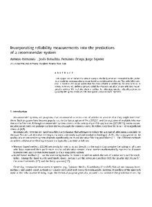 | Título: | Incorporating reliability measurements into the predictions of a recommender system |