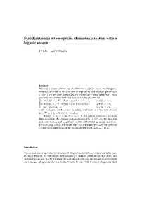 | Título: | Stabilization in a two-species chemotaxis system with logistic source |