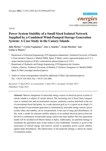 | Título: | Power system stability of a small sized isolated network supplied by a combined wind-pumped storage generation system: a case study in the Canary Islands |