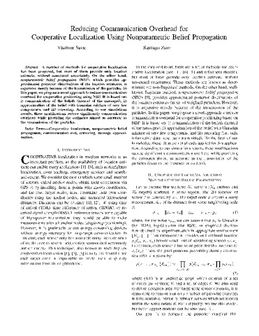 | Título: | Reducing communication overhead for cooperative localization using nonparametric belief propagation |