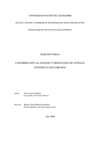 | Título: | Contribución al análisis y procesado de señales fotónicas multibanda |