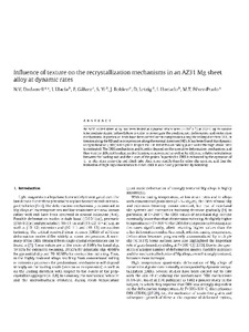 | Título: | Influence of texture on the recrystallization mechanisms in an AZ31 Mg sheet alloy at dynamic rates |