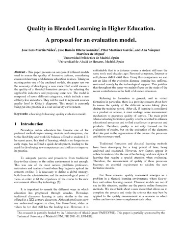 | Título: | Quality in Blended Learning in Higher Education. A proposal for an Evaluation Model. |