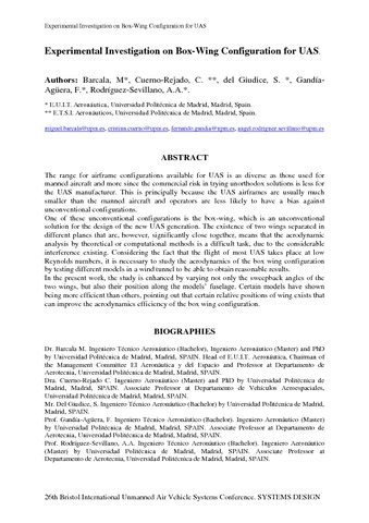 | Título: | Experimental investigation on box-wing configuration for UAS |