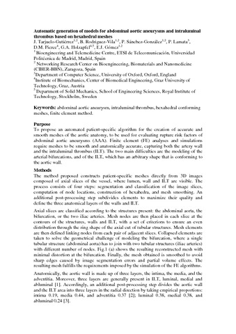 | Título: | Automatic generation of models for abdominal aortic aneurysms and intraluminal thrombus based on hexahedral meshes |