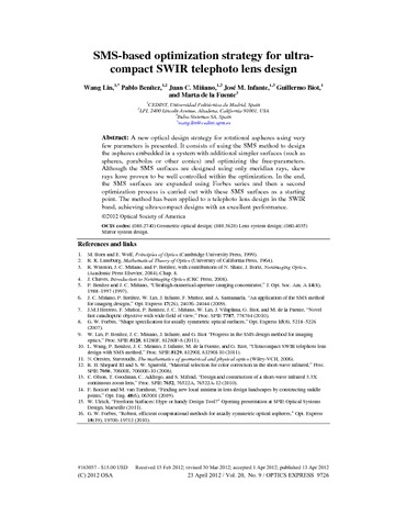 | Título: | SMS-based optimization strategy for ultra-compact SWIR telephoto lens design |