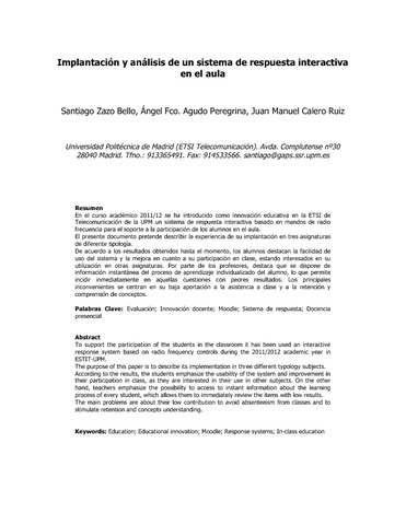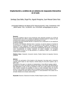 En el curso académico 2011/12 se ha introducido como innovación educativa en la ETSI de Telecomunicación de la UPM un sistema de respuesta interactiva basado en mandos de radio frecuencia para el soporte a la participación de los alumnos en el aula.