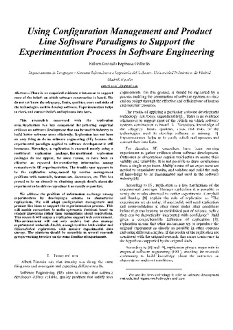| Título: | Using configuration management and product line software paradigms to support the experimentation process in software engineering. |