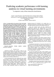 | Título: | Predicting academic performance with learning analytics in virtual learning environments: A comparative study of three interaction classifications |