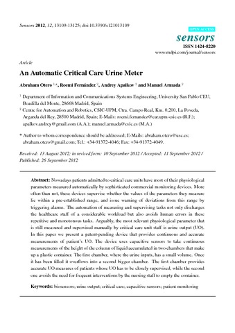 | Título: | An automatic critical care urine meter |
