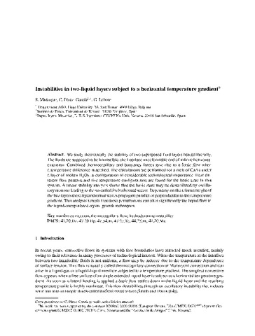| Título: | Instabilities in two-liquid layers subject to a horizontal temperature gradient |