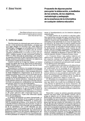 a otras aportaciones individuales y al debate que tuvo lugar durante un seminario que, sobre Objetivos,Metodología y Pedagogía de la Enseñanza de la Informática,organizó el CREI en el pasado mes de noviembre.