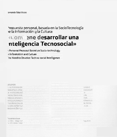 | Título: | Propuesta personal, basada en la Socio Tecnología de la Información y la Cultura: conviene desarrollar una inteligencia Tecno social |