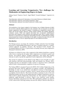 | Título: | Learning and Assessing Competencies: New challenges for Mathematics in Engineering Degrees in Spain. |
