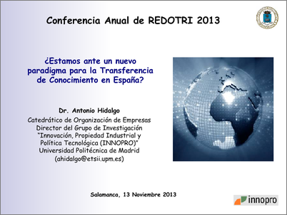 En: "Conferencia RedOTRI 2013", 03/11/2013, Salamanca (España).