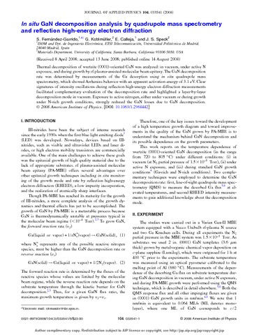 | Título: | In-situ GaN decomposition analysis by quadrupole mass spectrometry and reflection high-energy electron diffraction |