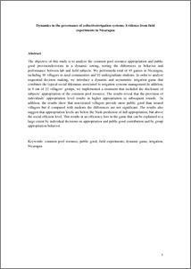 | Título: | Dynamics in the governance of collective irrigation systems: Evidence from field experiments in Nicaragua. |