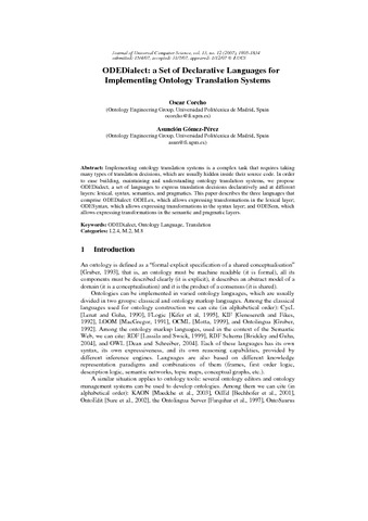 | Título: | ODEDialect: a set of declarative languages for implementing ontology translation systems |