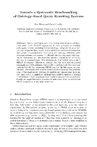 | Título: | Towards a systematic benchmarking of ontology-based query rewriting systems |