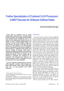 Further Specialization of Clustered VLIW Processors: A MAP Decoder for Software Defined Radio.