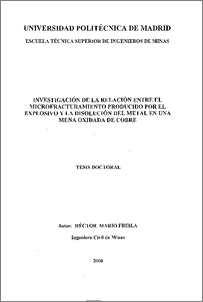 | Título: | Investigación de la relación entre el microfracturamiento producido por el explosivo y la disolución del metal en una mena oxidada de cobre |